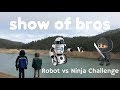 On this episode, the brothers have a robot vs. ninja challenge to see if their new robot can knock down a protected ninja.