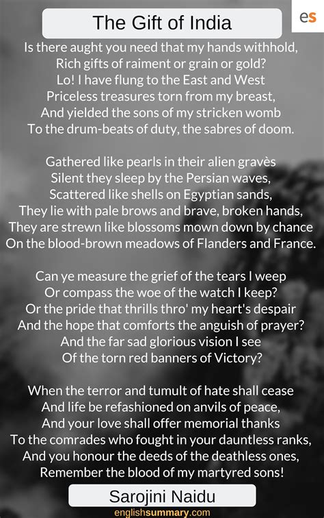poems india naidu sarojini poem gift english quotes patriotic poetry visit